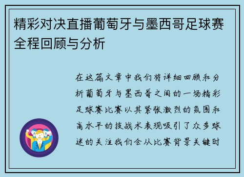 在欧冠历史的舞台上,利物浦与拜仁慕尼黑之间的对决始终备受瞩目。这两支球队不仅在欧洲赛场上具有强大的竞争力,更是各自联赛中的佼佼者。本文将重温这场经典对决,通过精彩瞬间的回放,深入分析双方的战术布置、关键球员表现以及比赛中的决定性时刻。首先,我们将探讨两队的历史交锋背景,其次分析比赛中出现的重要战术变化,再来关注球员们在场上的表现,最后总结这场对决带来的深远影响。希望通过这些内容,能够更加全面地了解...