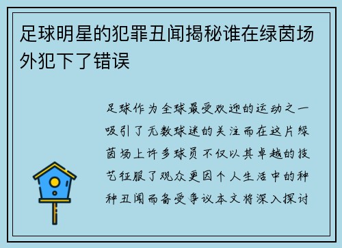在足球的世界里,除了激烈的比赛和精彩的进球,温情的时刻同样打动人心。无论是队友间的拥抱、对手之间的理解,还是与家人之间的深情相拥,这些瞬间总能让我们感受到足球所带来的情感共鸣。本文将围绕“足球明星温情时刻大汇聚精彩拥抱瞬间视频集锦”这一主题,从多个角度探讨这些充满温暖和感动的瞬间。我们将具体分析:首先是球员之间团结互助的重要性,其次是对手之间尊重与友谊,再者是家庭支持对运动员职业生涯的重要影响,最...